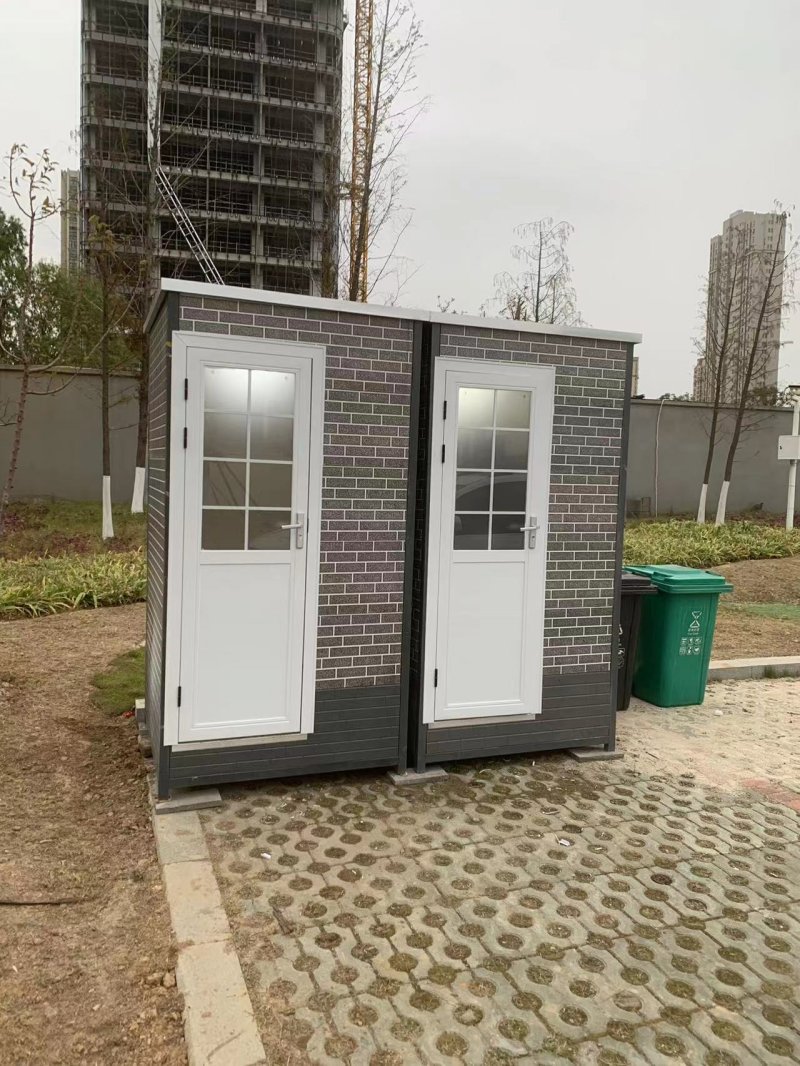 拼裝廁所;在廠里做好各個廁所部件,再到現(xiàn)場組裝在一齊,適合不易運輸?shù)拇笮蛶_@座箱式廁所,女廁5個蹲位內(nèi)配工具間,男廁2個蹲位+2小便斗,第三衛(wèi)生間由殘疾馬桶、助力洗手盆和兒童馬桶、兒童洗手盆外加嬰兒臺等設(shè)施。廁所前后有窗,通風(fēng)采光,前部走廊裝有屋檐,防雨防曬。此廁所位于公路綠道邊,整體大氣,功能齊全,造型美觀,是一道難得的靚麗景觀!